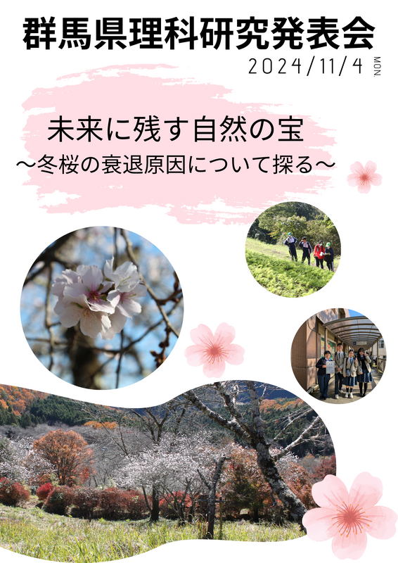 4日(月)に群馬大学で行われた群馬県理科研究発表会に参加しました。F.C.Labは生物部門で「未来に残す自然の宝~冬桜の衰退原因について探る~」をテーマに研究発表を行いました。