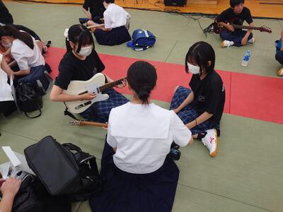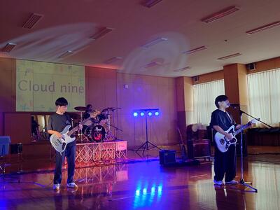 軽音楽部では代表バンドによる演奏と楽器体験を行いました。