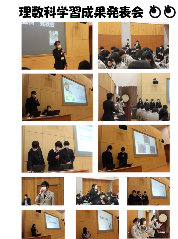 3月7日(金)に「理数科学習成果発表会」を開催し、理数探究で1年間取り組んできた成果を発表しました。