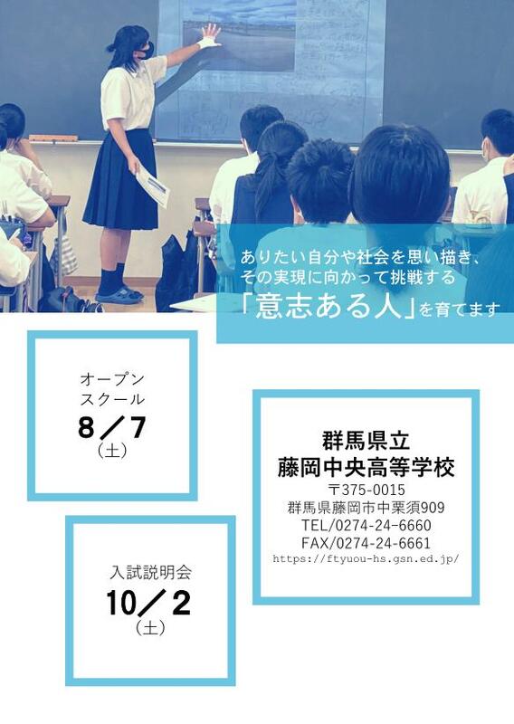 8月4日から群馬県の警戒度が4に引き上げられましたが、オープンスクールについては、感染症対策を十分に講じたうえで予定通り開催いたします。