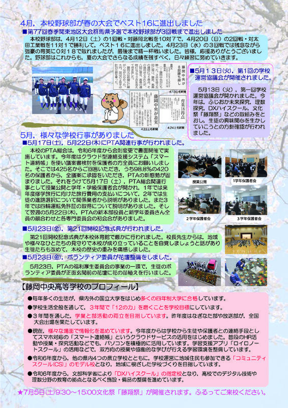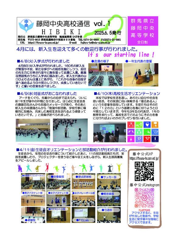 令和7年度ひびき2号の発行について 投稿日時 : 09/26 地域連携部 カテゴリ:連絡事項 地域連携部(PTA)ひびき係では、地域の方々や中学校の生徒・職員の方々に、学校生活の様子をより広く知っていただくため、年数回、PTA通信「ひびき」を発行しております。このたび2号ができました。2号は7月~8月の学校の動きをまとめたものです。下記リンクからpdfでダウンロードしてご覧になってください。 R7ひびき2号.pdf