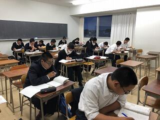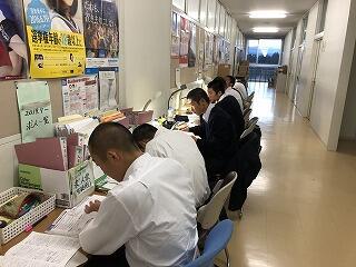 職員室前で勉強する様子。先生にすぐに聞くことができることが利点です。