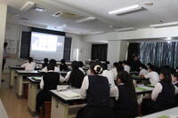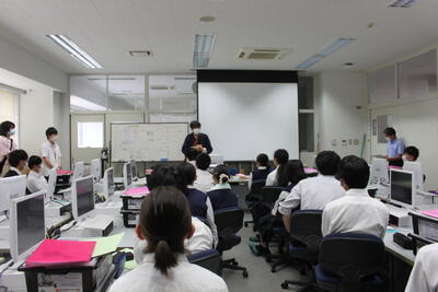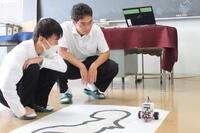 9月3日、群馬大学理工学部の山田教授をお招きして「ロボットプログラミング講座」を行いました。班ごとにロボットを組み立てたり、コース別(コースは全部で3種類)のプログラムを作成したりして、最終的にライントレースでタイムを競いました。「プログラミングは初めて」という生徒も多い中、話し合ったり、質問したりしながら一生懸命取り組んでいました。失敗しても何度も挑戦することの大切さを知り、論理的思考力、問題解決能力を高めることができました