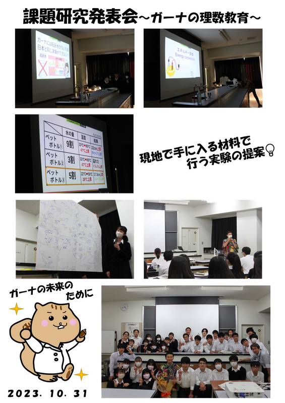 11月12日(水)に2年理数科では理数探究のクラス内発表会をポスター形式で行いました。この発表会で先生方や生徒から得たアドバイスや疑問をもとに、自分たちの取り組みを客観的に振り返ります。今回見つかった新たな課題の解決に向けて、今後の研究内容や実験方法をどのように改善・修正していくのか、具体的にどのように行動するのかを考えていきます。3月に行われる理数科学習成果発表会が楽しみですね!みなさん、発表お疲れ様でした