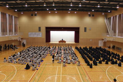 3月22日(金)に第一体育館で3学期終業式・離退任式が行われました。