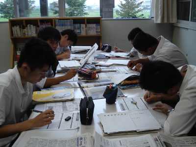 7月27日(月)藤岡工業高等学校にて地区の高校(藤岡工業 藤岡北 万場 吉井 藤岡中央)5校の図書委員が集まって読書会をしました。