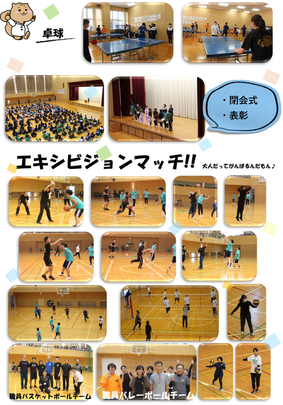 最後にバスケットボールとバレーボールの優勝チームは、職員チームとエキシビジョンマッチを行いました。
