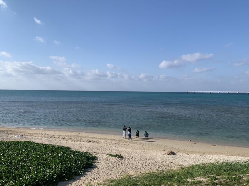 夕食前、ホテルのビーチを散策。海に向かってみんなで♡