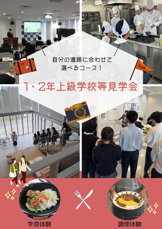 10日(木)に1、2年生が学年ごとに4つのグループに分かれて大学や専門学校を見学しました。
