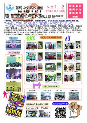 地域連携部(PTA)ひびき係では、地域の方々や中学校の生徒・職員の方々に、学校生活の様子をより広く知っていただくため、年数回、PTA通信「ひびき」を発行しております。このたび2号ができました。2号は7月~8月の学校の動きをまとめたものです。下記リンクからpdfでダウンロードしてご覧になってください。